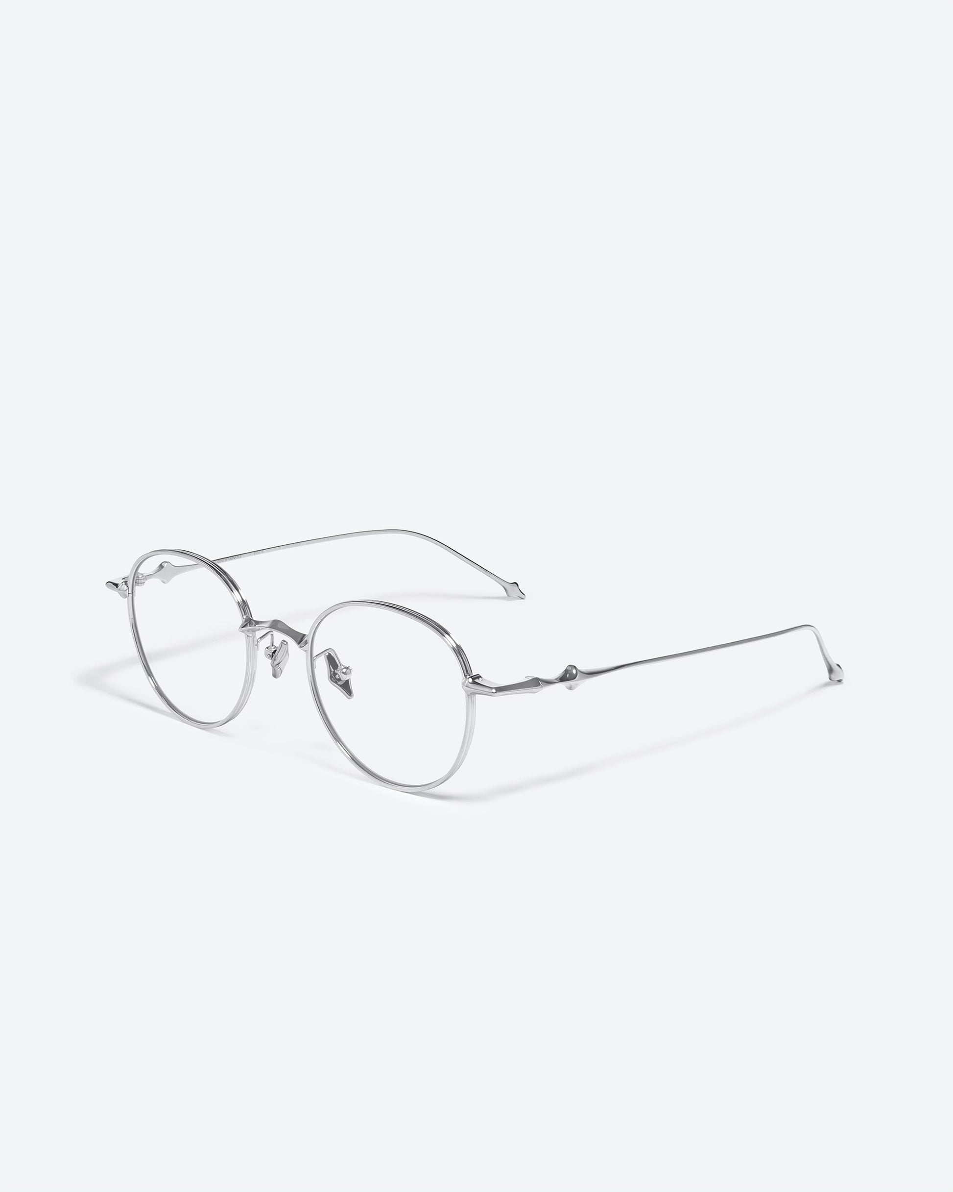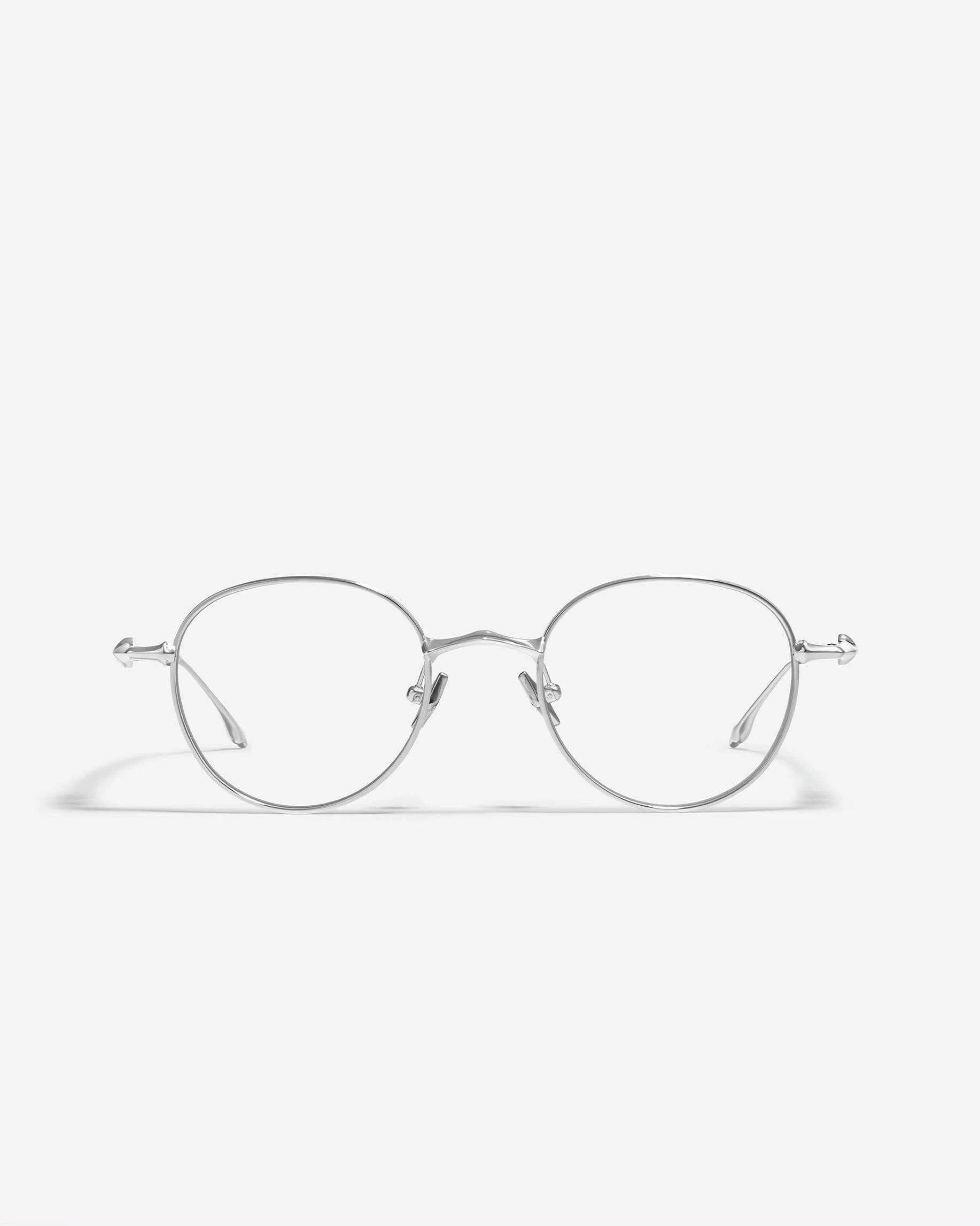 Discover the EP 02 glasses from the BOLD Collection, enriched with audacious and daring designs. Featuring a round shape drawn with soft curves in a silver color, this piece conveys a sense of delicacy. Showcasing a powerful identity, the BOLD symbol on the temples, nose pads, and tips creates the audacious narrative that imbues this collection. The temples are made from titanium, which is lightweight and provides a comfortable fit. The clear lenses block blue light and 99.9% of UV rays.