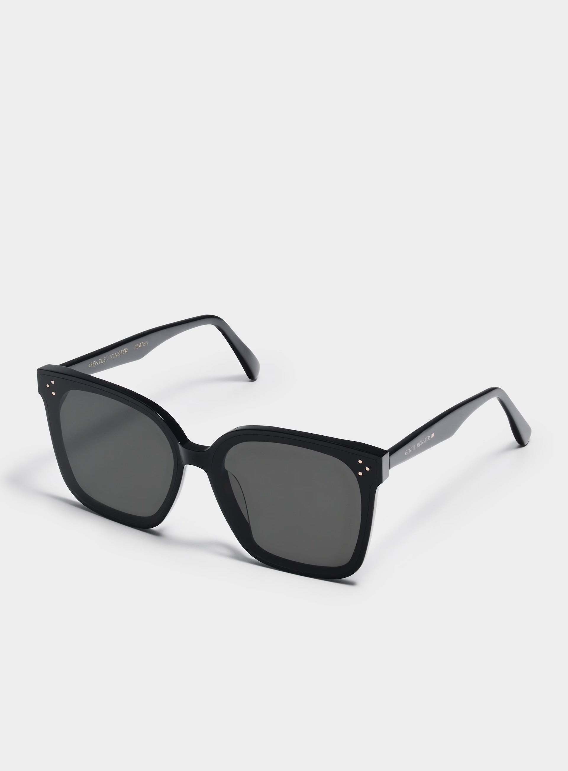 Introducing Her 01, an oversized square frame in the 2020 New Flatba Series with 99.9% UV protected nylon lenses. This style is accentuated with three rose gold bullet shaped pins on the lenses and complemented with engraved logos on the temples.
