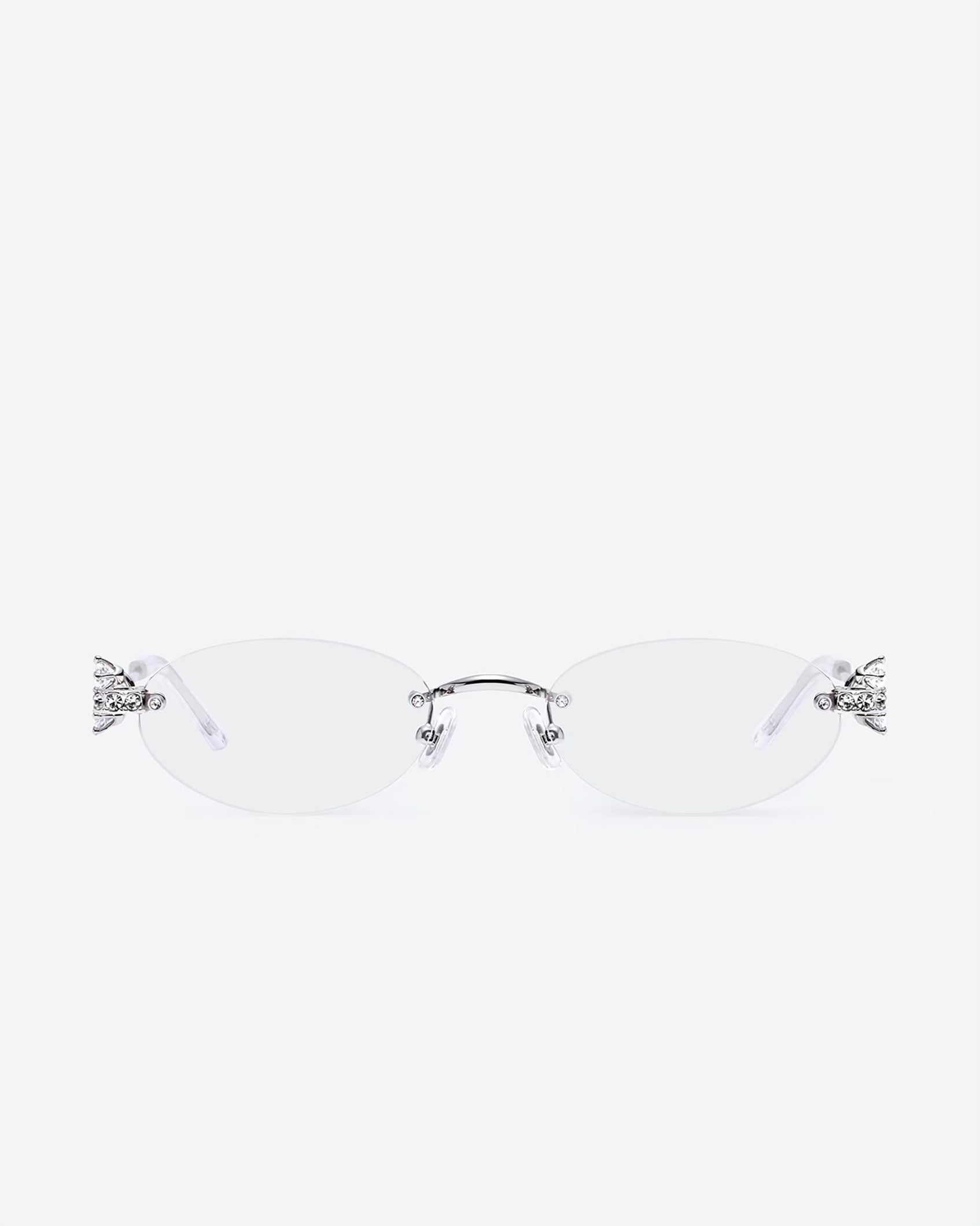 Discover the Orora 02 sunglasses from the 2025 Jewelry Collection. This piece features oval sunglasses in silver metal, reminiscent of precious jewelry.