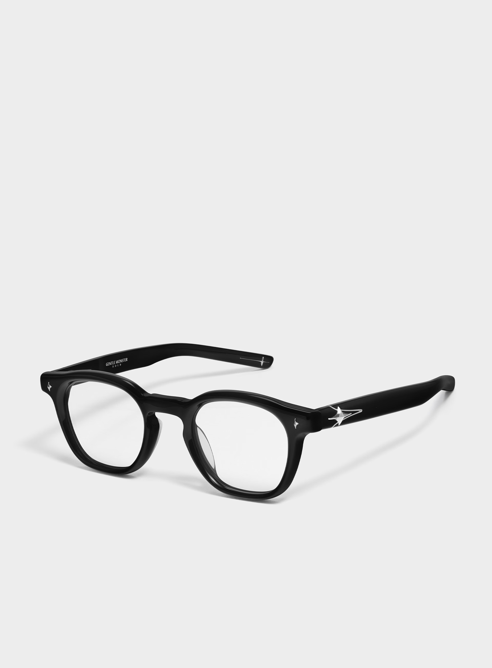 Discover the Vonzo 01 glasses from the BOLD Collection, enriched with audacious and daring designs. Featuring a curved square shape and a simple black frame, this piece conveys a modern touch. The temples, highlighted with straight line details, are finished in a tapered style, adding a touch of delicacy. The BOLD symbol on the end pieces and temples completes the audacious narrative of the collection. The clear lenses block blue light and 99.9% of UV rays, ensuring maximum comfort for the eyes.